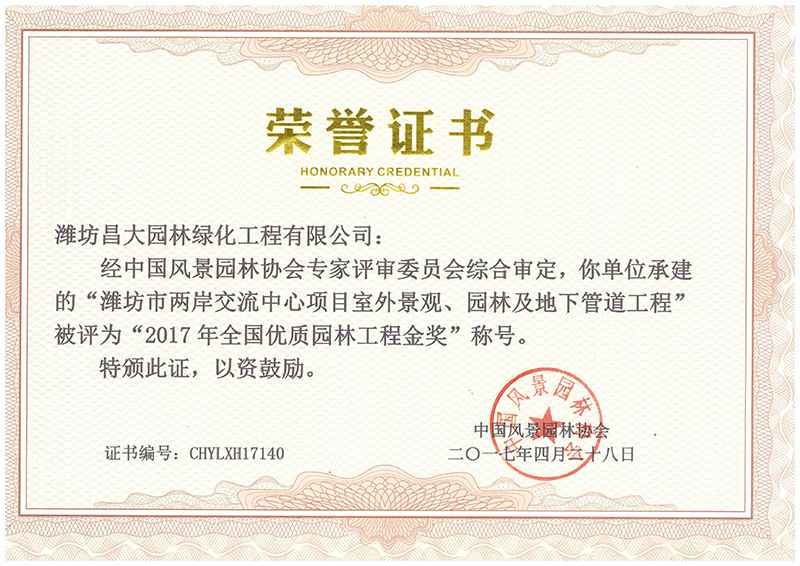全國優質園林工程金獎